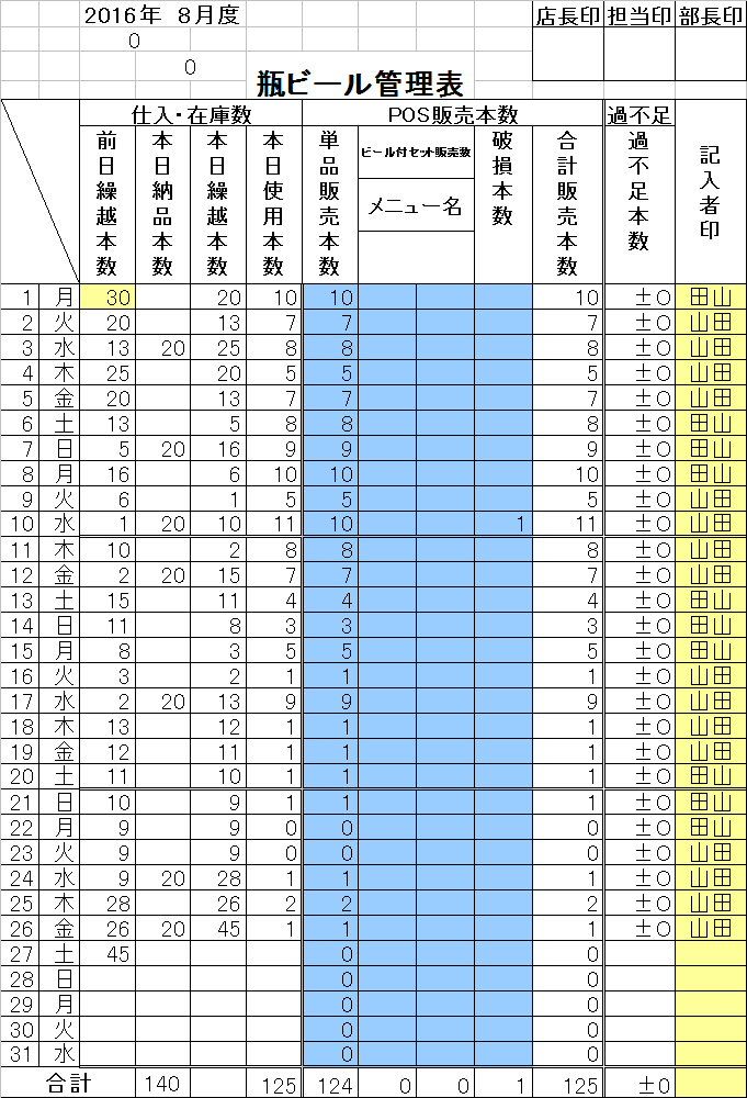 瓶ビール管理シート